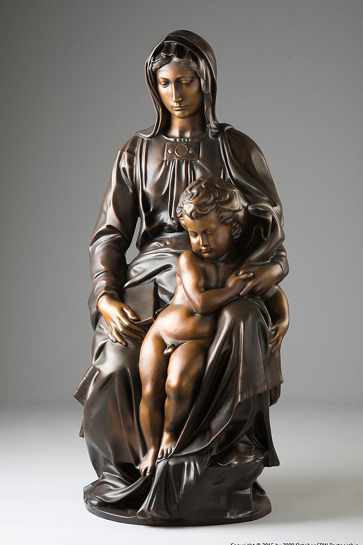 答:这些授权雕塑是使用原始模具制造的青铜铸件。每个模具都经由Casa Buonnaroti验证过,是米开朗基罗作品使用的模具。