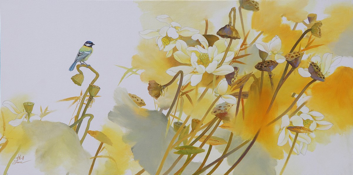Carefully listening to the flowers’ whispers and enjoying the creating of still life paintings, my focus is on the “Lotus/Water lily” as a subject.